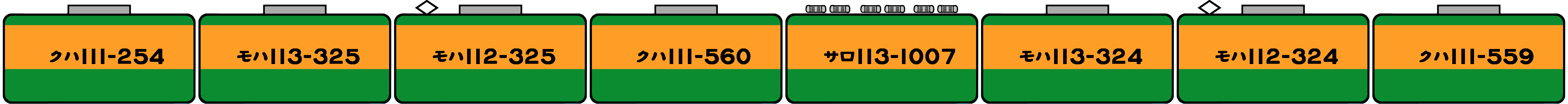 | クハ111 | モハ113 | モハ112 | クハ111 | サロ110 | モハ113 | モハ112 | クハ111 | |